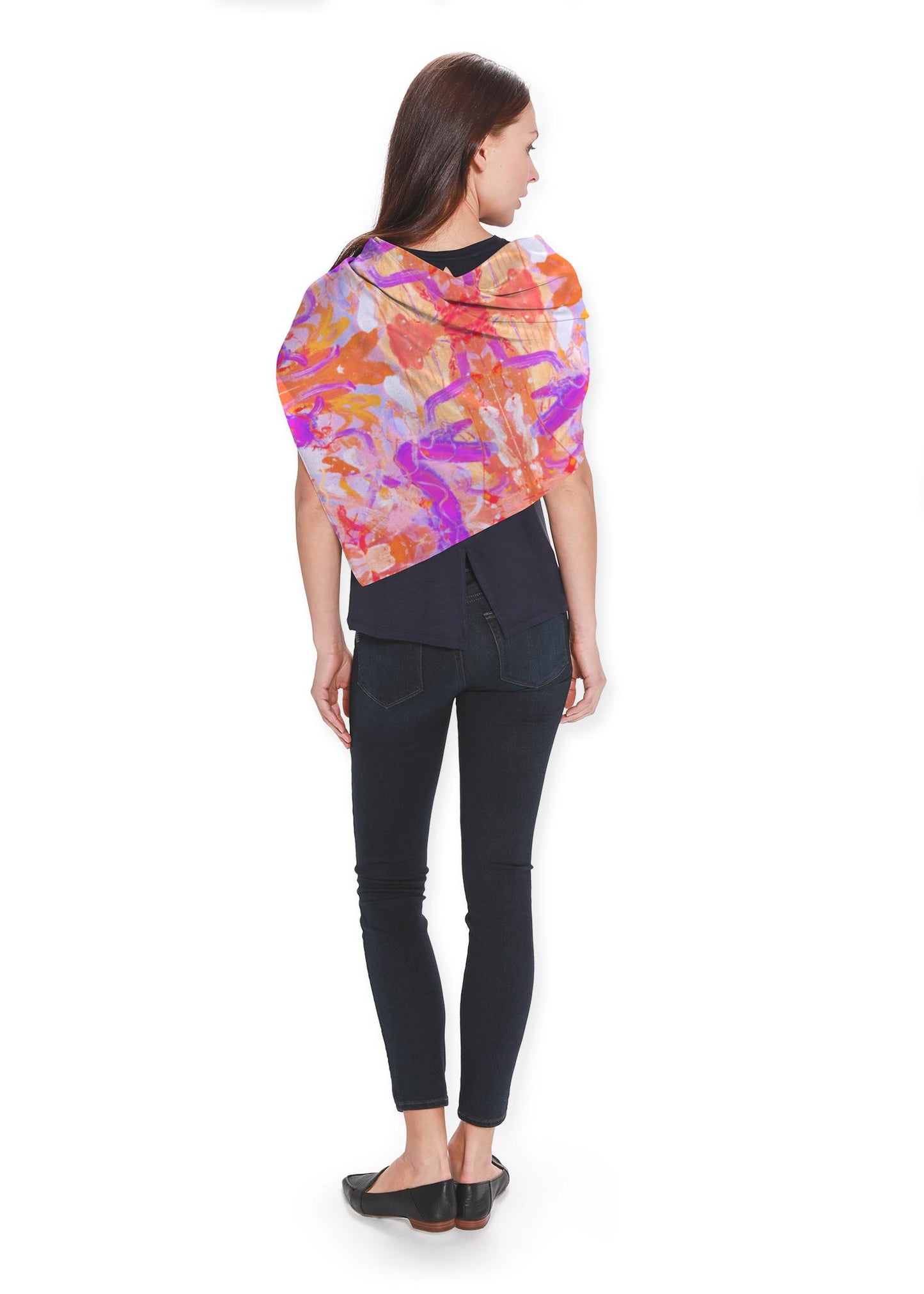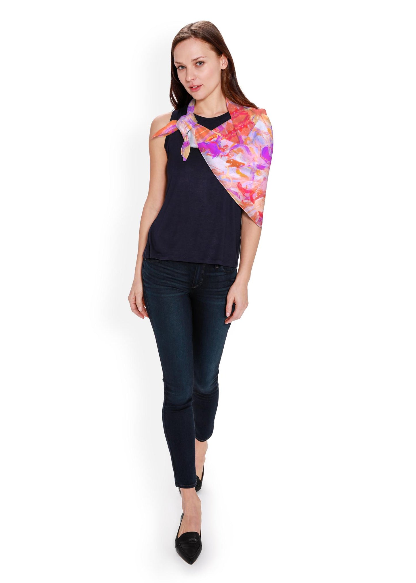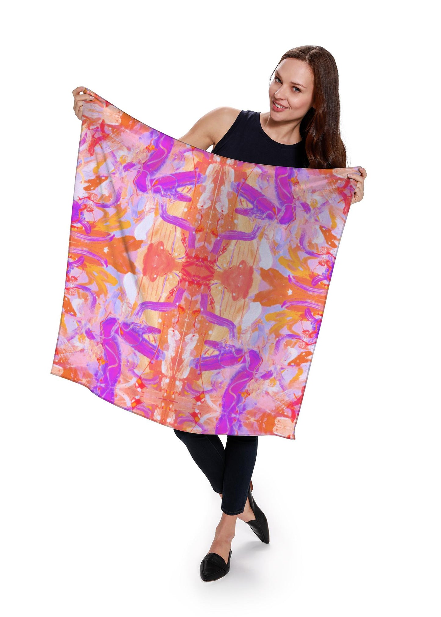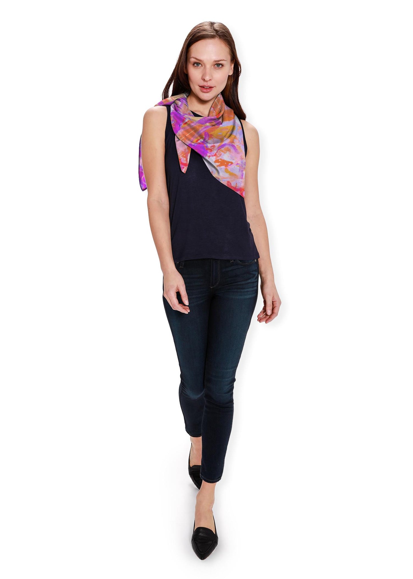 This luxurious Silk Square Scarf, made with 100% Natural Charmeuse Silk, is the perfect gift for a loved one or a special treat for yourself. Whether you pair it with a dress or a pair of dress pants, this beautiful scarf will elevate any outfit, day or night. This scarf features the original artwork of Jacquin Headen, based on her painting "Free Flow"